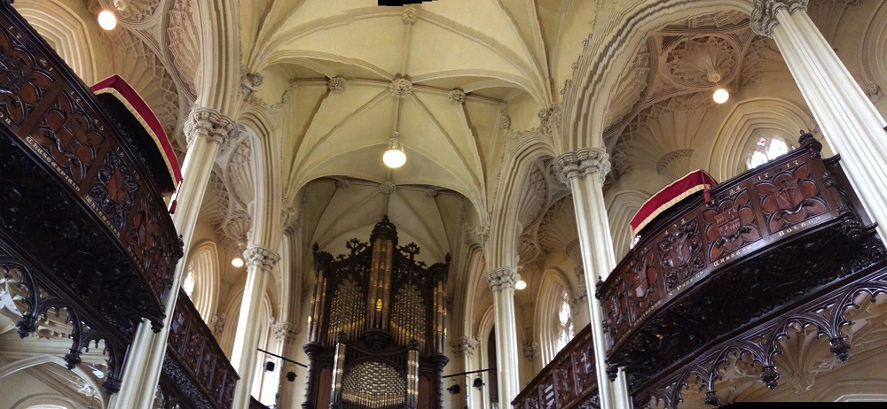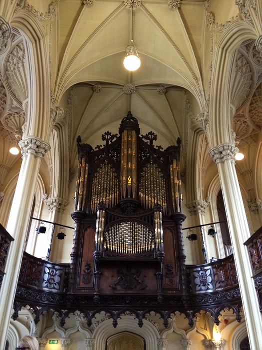 ステンドグラスの向かい側にはパイプオルガンが。