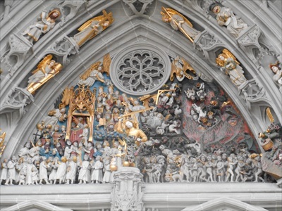 それから、教会の門に造られた天国と地獄の装飾。