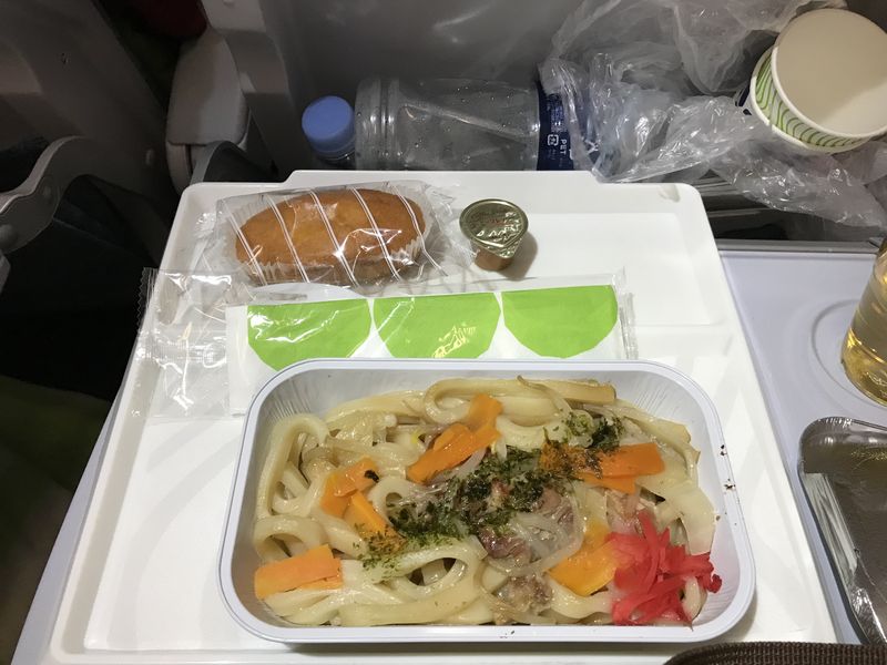 ヘルシンキ到着2時間前には軽食ということで「焼うどん」が出ました。