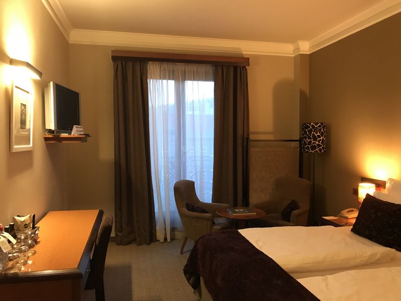 ホテルの部屋は落ち着いた色調で二人で止まるにも狭すぎないよい部屋でした。