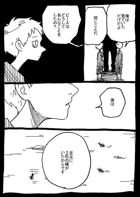 今回はその日その時間その気候その場所で平和の足元に蟻が3匹いたのでこういうことになっただけです。