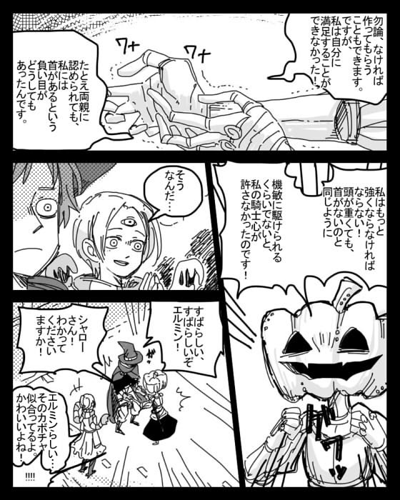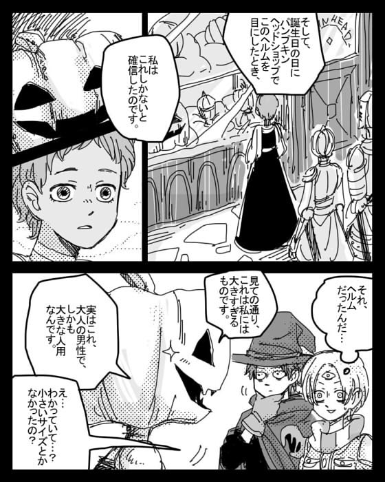 両親のように普通のヘルムに近いものもあれば、エルミンのザ・カボチャみたいなものもある。