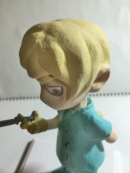 | ちなみに、制作当初は自立していたのですが、魔が差して足元を削ったら自立しなくなってしまいました。 最終的には、土台に接着剤で固定しました。 後は少しまともかな…。 |