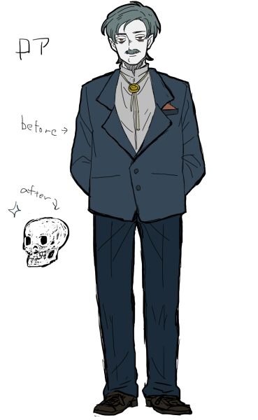 カランタの旦那 悪魔、骨 エルミンが働いていた頃にはもう骨 基本的に頭蓋骨だけの登場 でもちゃんと悪魔している カランタにメロメロ← 食べるまで愛してくれているなんて!と考える寛大な精神の持ち主 ただしカランタに限る 性格 残忍・悪戯ずき(カランタ以外 ポーカーフェイス(カランタ以外 人間を騙すのが趣味 |