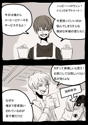 珈琲屋にて、らくがきハロウィン漫画
