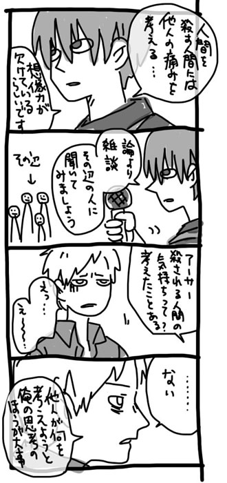 想像して、その想像を恐れて、人間は思いとどまる。踏みとどまる。