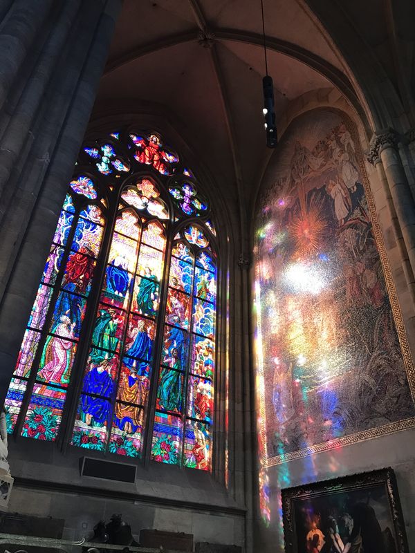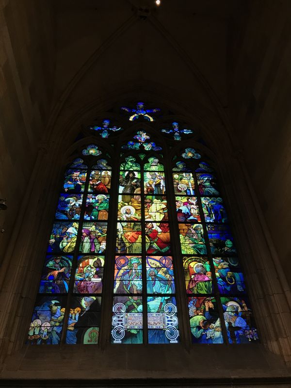ミュシャ(向こうではムハ)のステンドグラスも一つだけあり、通常のステンドグラスとは一線を画していました。