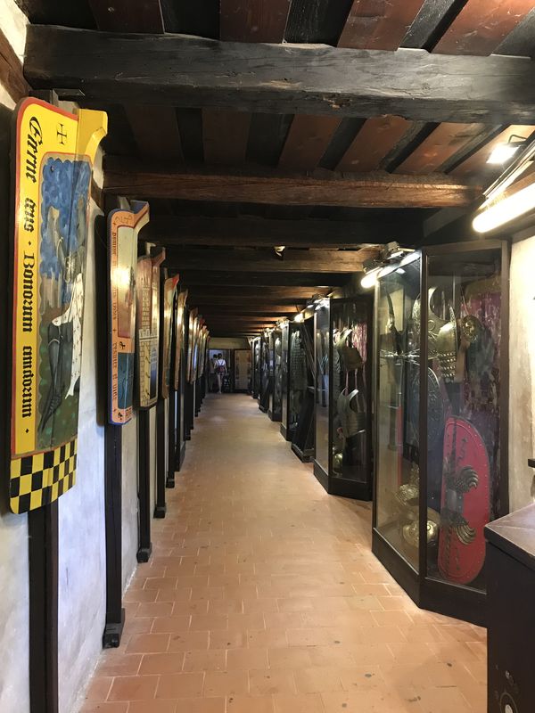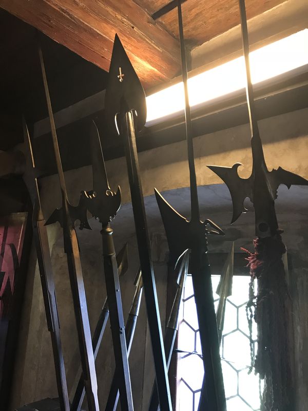 黄金の小道は、1Fはそれぞれ個別の家々が立ち並んでいますが、2Fは最初の入り口から入ると繋がっていて、武具が展示された廊下になっています。