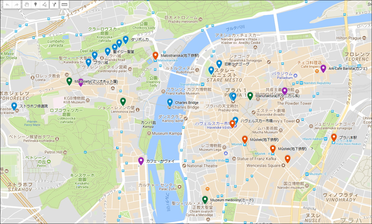 橋から撮ったプラハ城周辺。やっぱり、聖ヴィート聖堂の存在感が目立ちます。