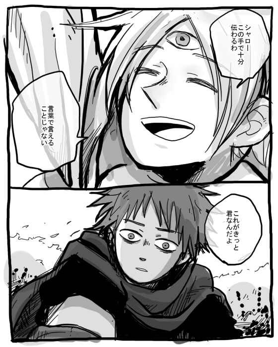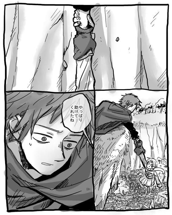 シャローとテラが初めて会ったとき、色々あって(←)崖から落ちたテラをとっさに掴んだ場面的な