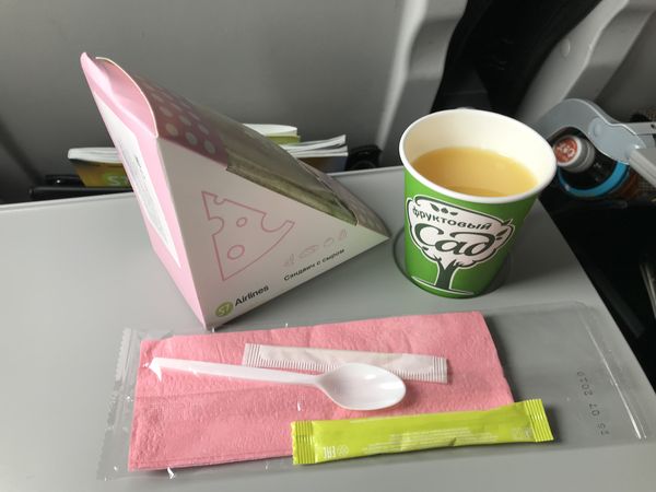 時刻通りに出発しました。出発後少ししてから軽食のサンドイッチの配布。