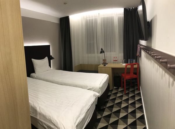 チェックインを済ませて部屋にGO。小さいながらも毎日ペットボトルの水を置いてくれて、過ごしやすい感じです。