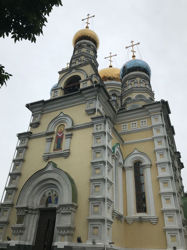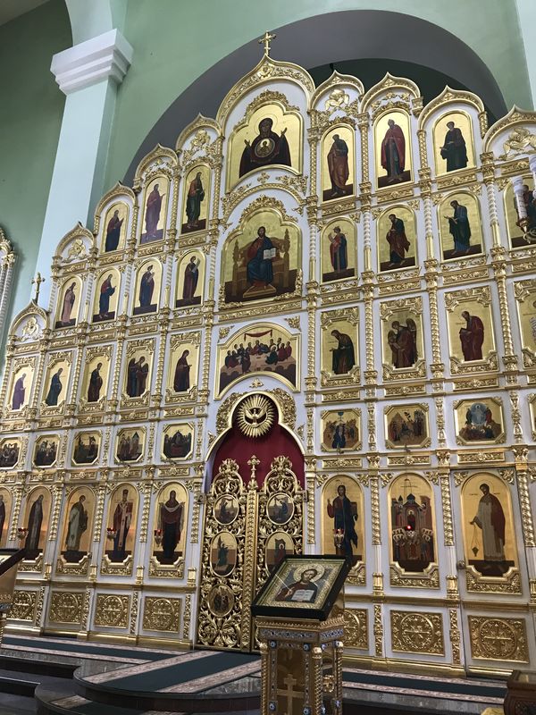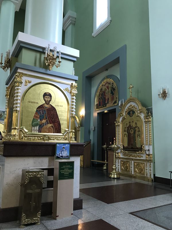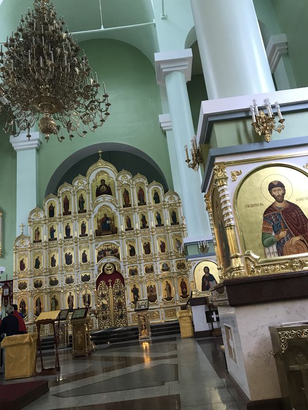 中は金の装飾が施されたイコン風の聖職者の絵が飾られていて、西欧で見るような教会とはまた違った雰囲気でした。