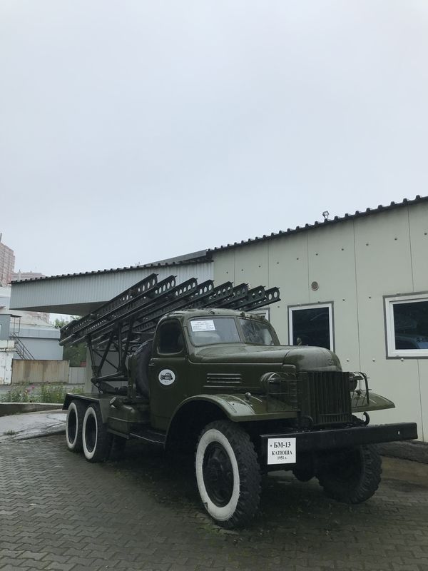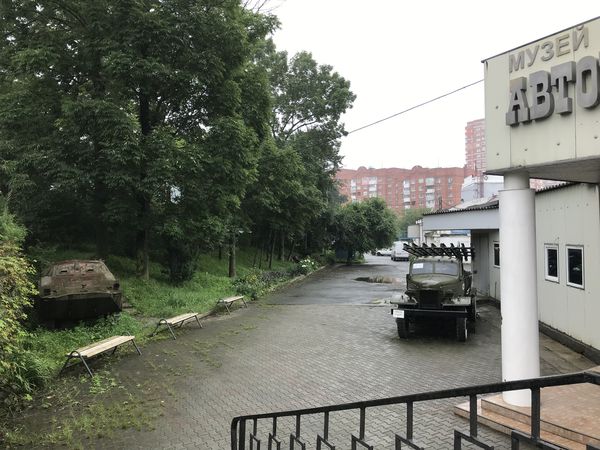 閑散とした見た目ですが、入り口の前に軍用車!Foo!熱い!