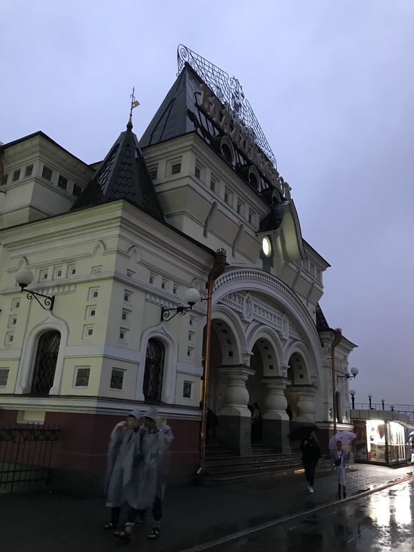 ウォッカを2杯飲んでテンションが上がった流れでもう少し坂を下ったところにあるウラジオストク駅の写真を撮りつつ、正面にあるスーパーにIN。