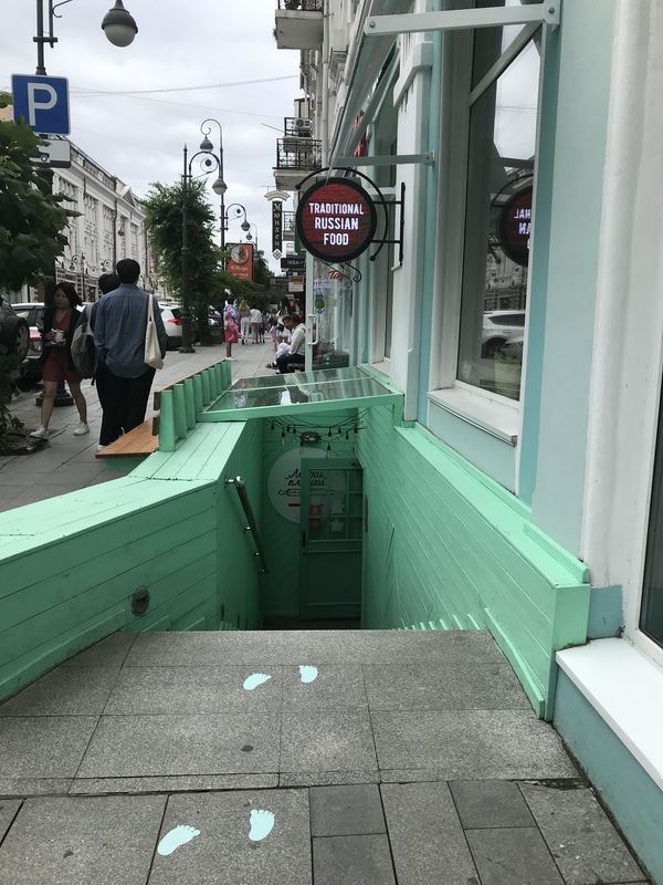 階段を下りて行って、左に曲がってからの右に入る、ね!スパシーバ!