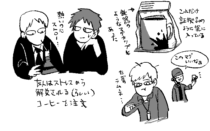 そして、試験管コーヒーもオーダー。こちらは英語でインスピレーションという意味の名前のコーヒーで、味はフレーバーコーヒーといった感じ。