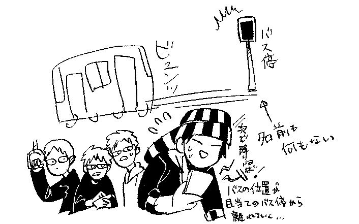 今回自分たちは降りたかったバス停を通り過ぎてしまい、一つ先のバス停で降りることになりました。