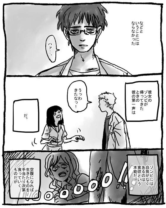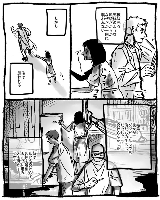 ゾンビたちには死体のように見えるという設定で漫画は見てください。