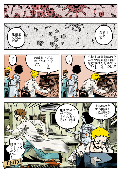 オールカラーはアメコミ風にしてみたかった。たのしかった。次回また描く機会があったらきっと白黒にする。←
